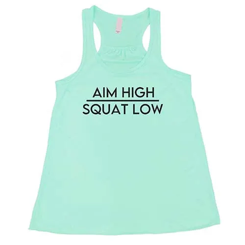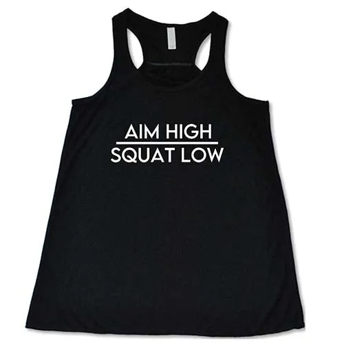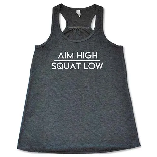Shop our Aim High Squat Low Tank Top. Affordable motivational gym tank top for all types of fitness. The perfect tank for anyone with a sense of humor.