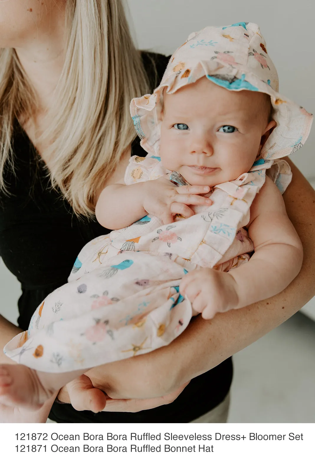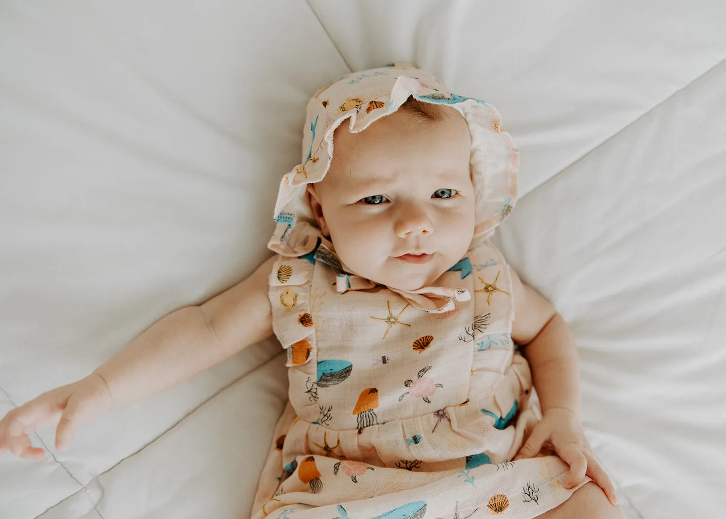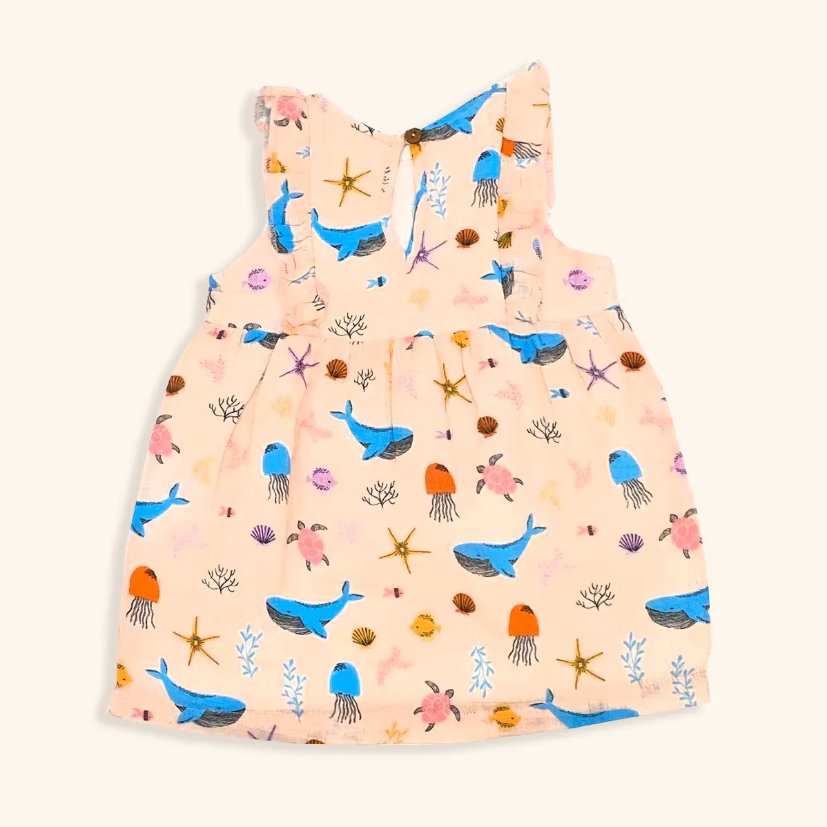 Ultra soft organic cotton baby girl dress featuring beautiful ocean with whales and turtles, inspired by Bora Bora. Our?oceans?are home to the incredible?marine wildlife, so always be mindful when we are sharing the same space on Earth.