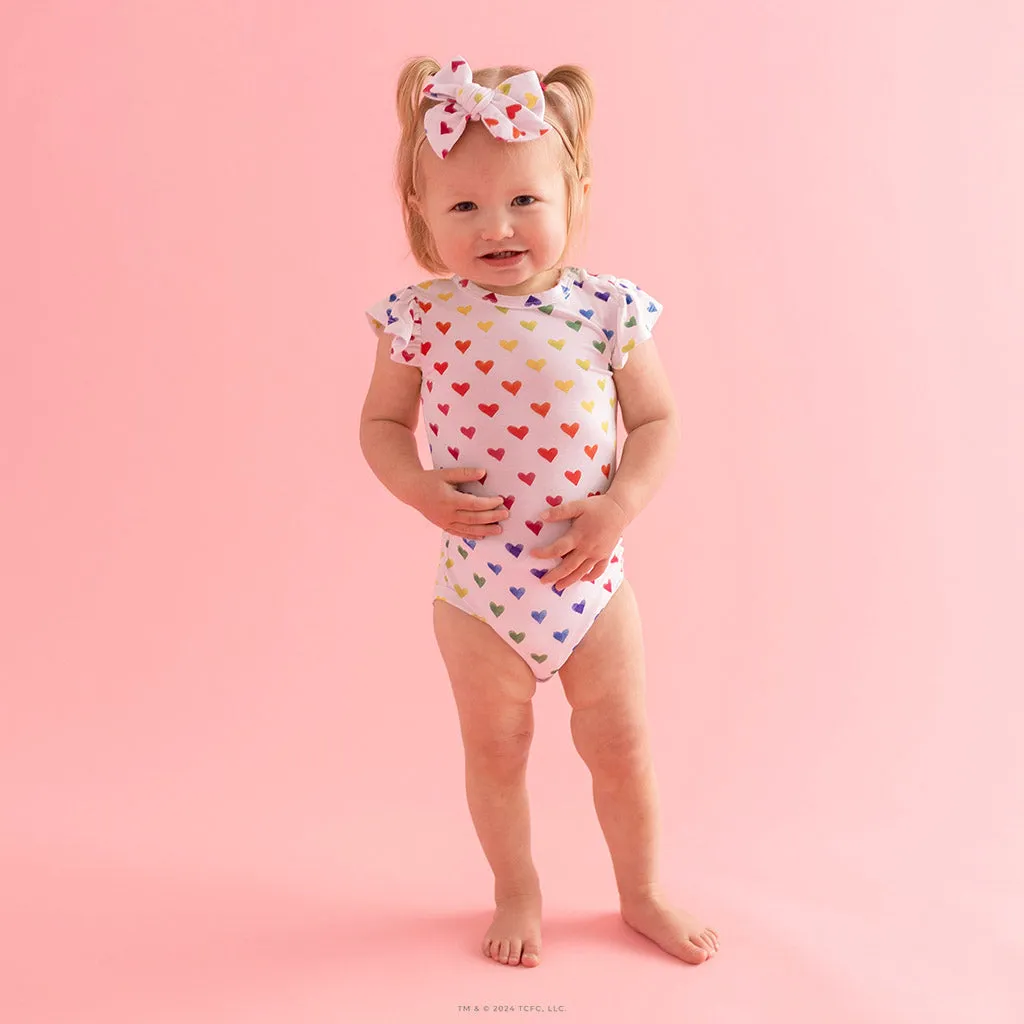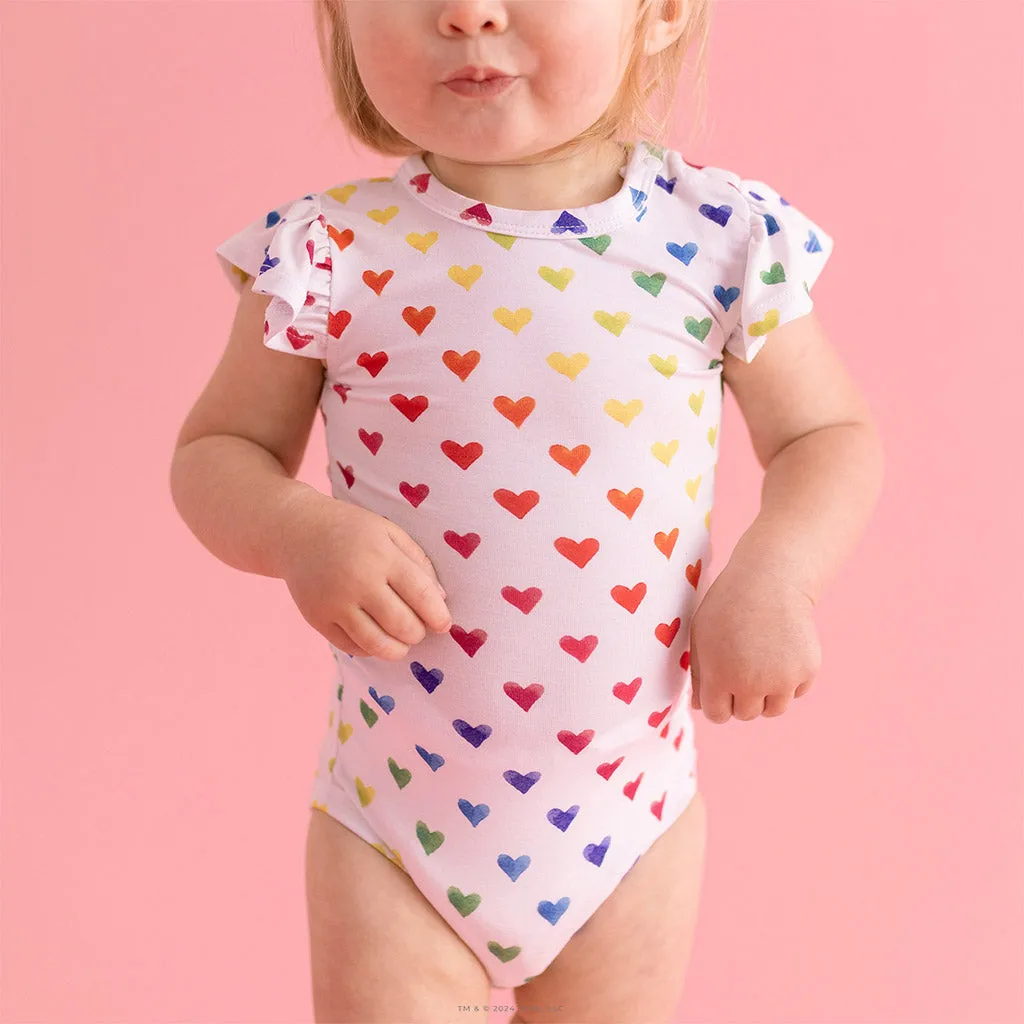 Color each day in a rainbow way with Care Bears™ x Posh Peanut! For the first time ever, Posh Peanut is teaming up with the colorful and caring Care Bears! Tumble into their cotton candy world of soft pastel clouds and stardust, where Care Bears cuddle, climb, and float with their friends. This collection truly comes from the heart, featuring your favorite Posh Peanut styles like warm and fuzzy plush Patoos, adorable dresses, and cute jammies! Let the fun shine in with this charming collection ranging from sizes Preemie to 12Y for your cute little bear and XS to 2XL for you.
