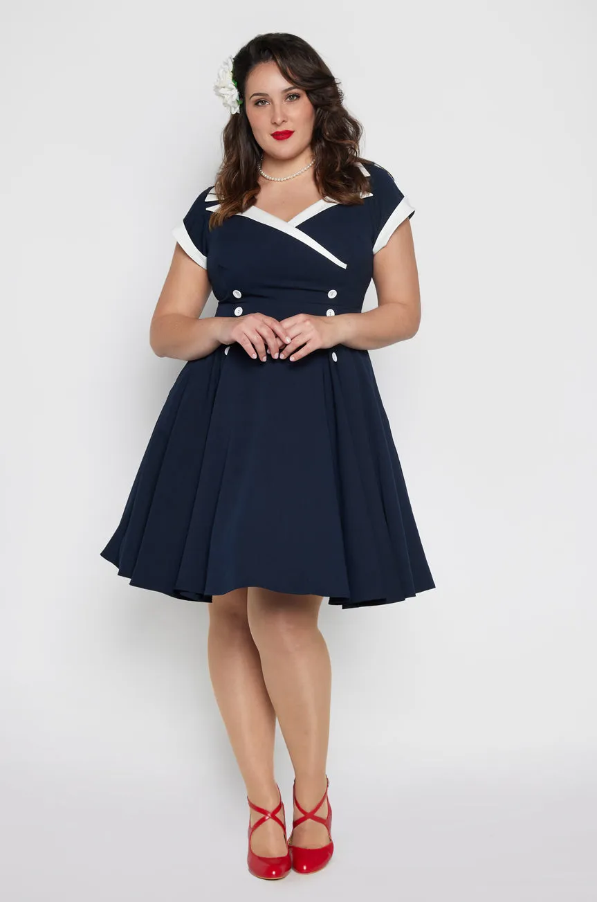 For perfect vintage-inspired style, look no further than the 'D'Amour Contrast Dress'. Inspired by iconic Diner Girl Dresses, this gorgeous 1950s Design is a must-have 'Kitten Classic'!