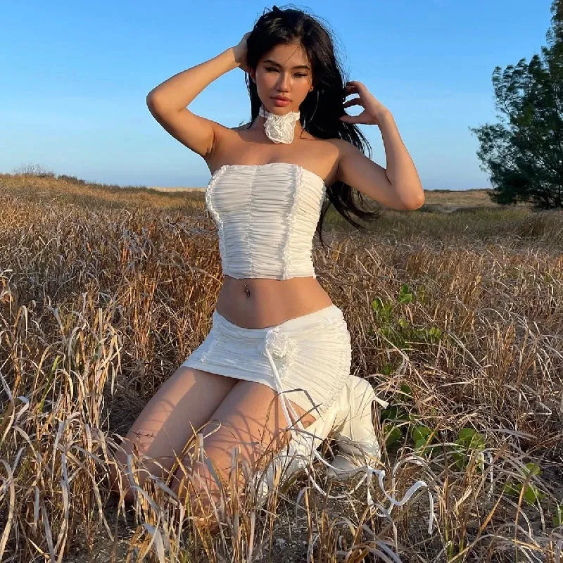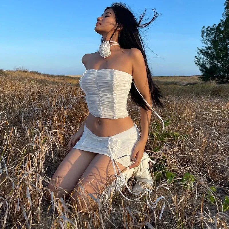DressBetty - White Ruched Backless Bodycon Mini Skirt