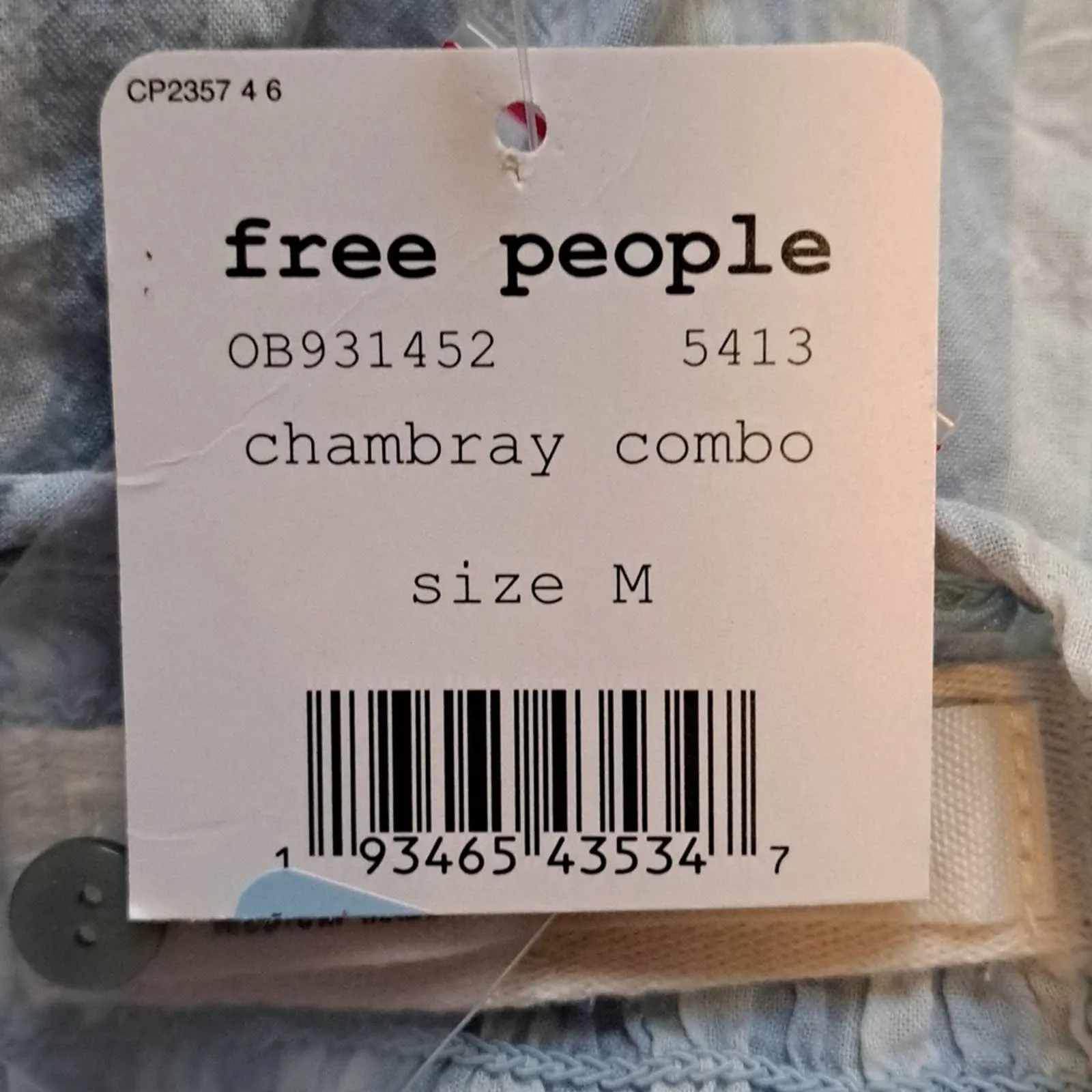 Free People A Little Bit of Something Top in Blue Chambray Combo