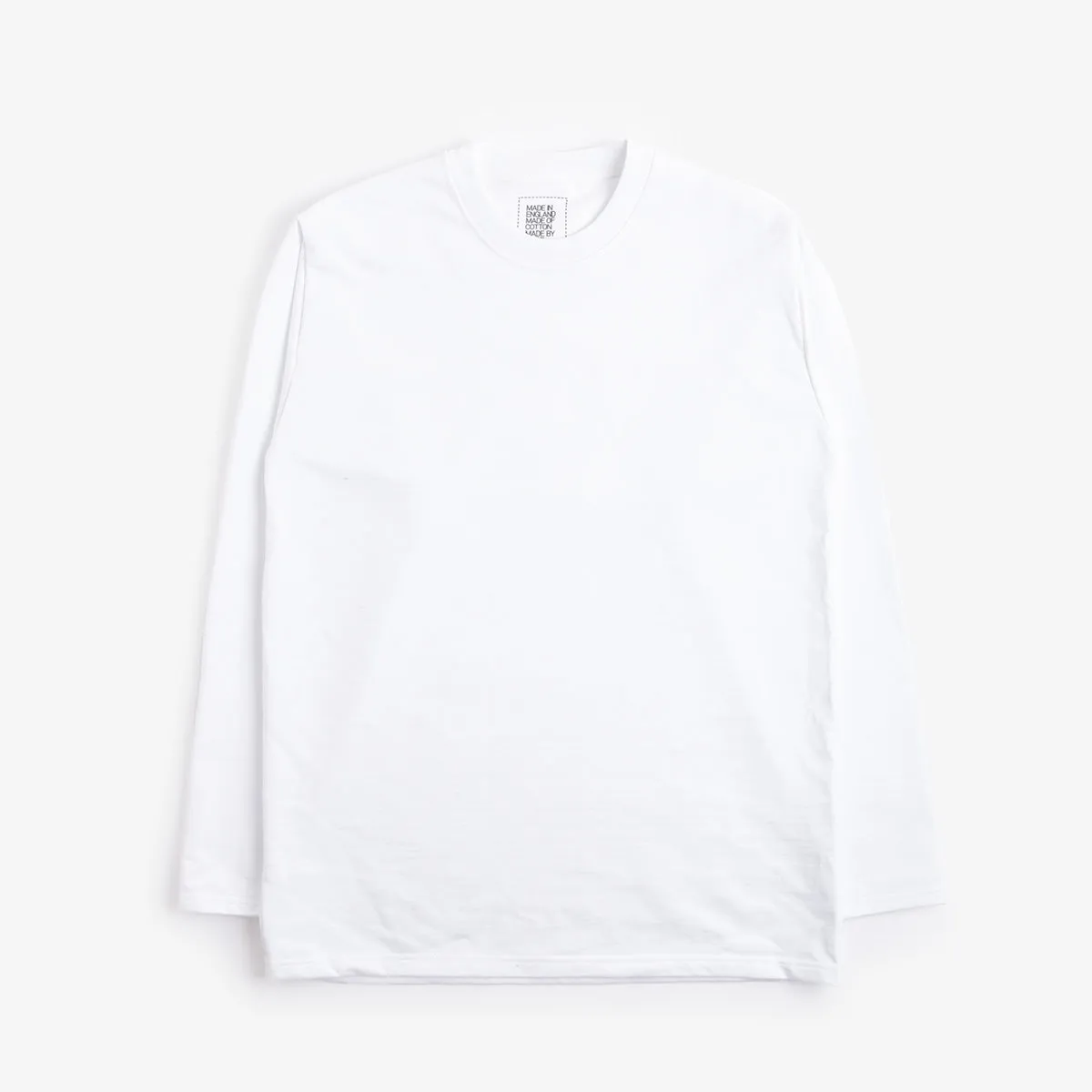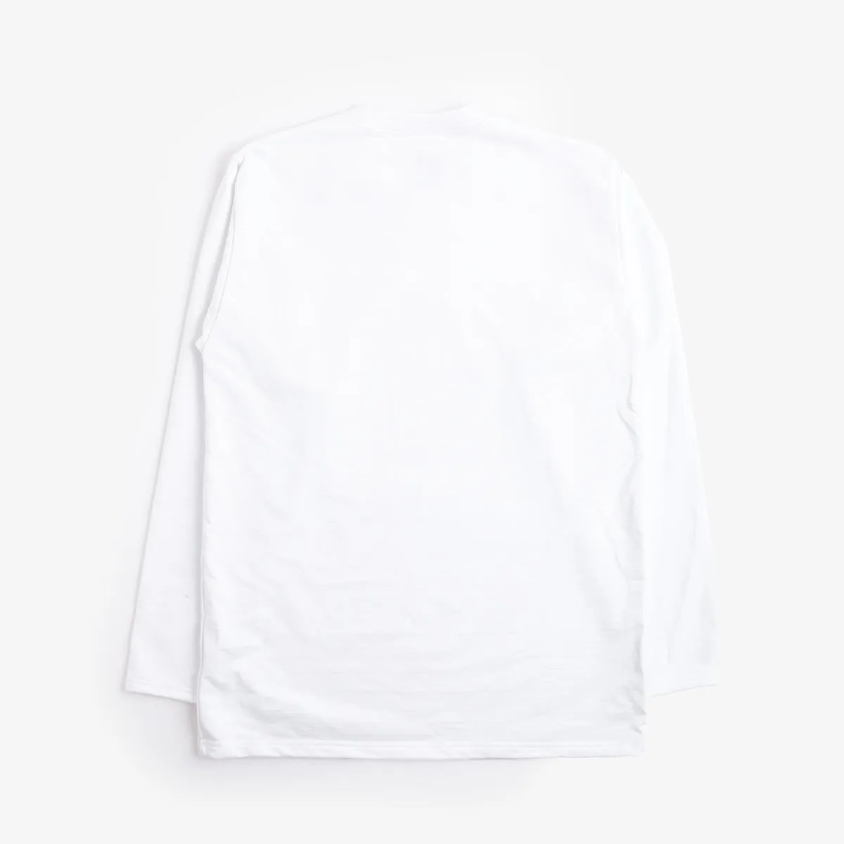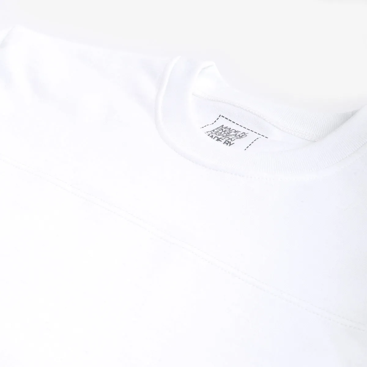 Introducing the Good Measure M-5 Heavyweight Long Sleeve T-Shirt in White. Made from a heavyweight 100% cotton piqué with a nod to old school Americana football tops.