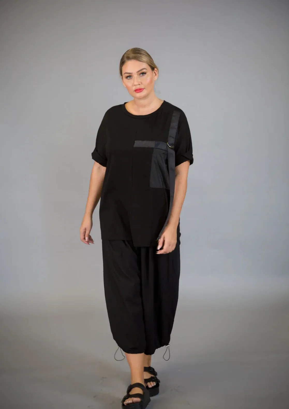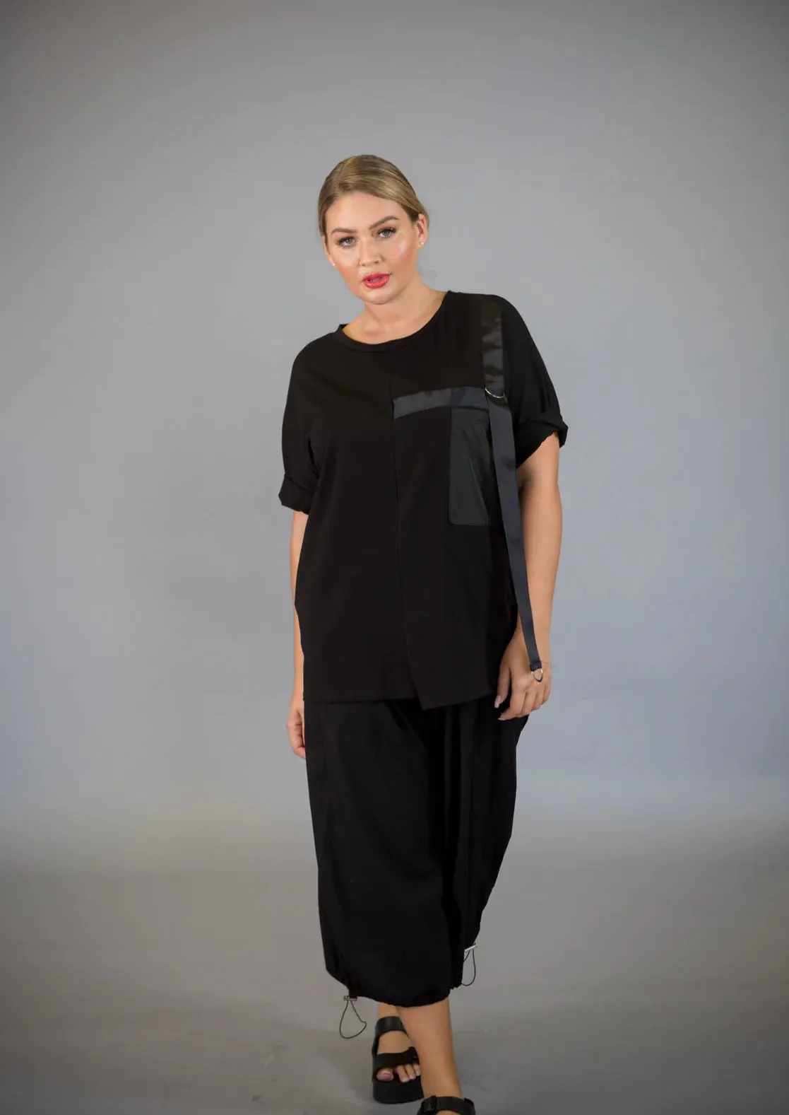 The Paolo Tricot Hi-Lo Pocket Top is made of a stretchy cotton making it super comfortable to wear. It has a drop short sleeve with a hi-lo hemline. It features a contrasting fabric front pocket and rib detail. Dress it up or dress it down, this top is sure to be one of your favourites.