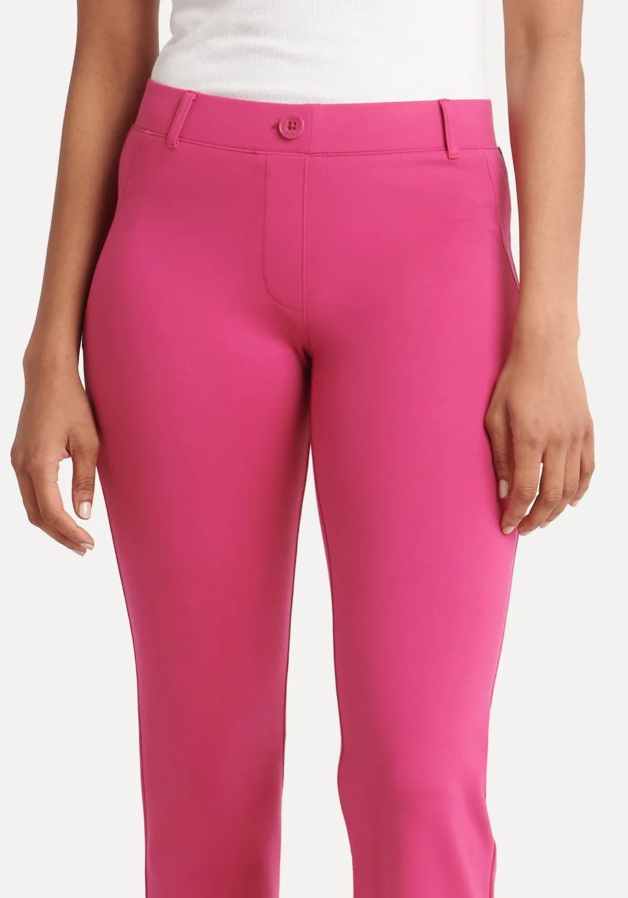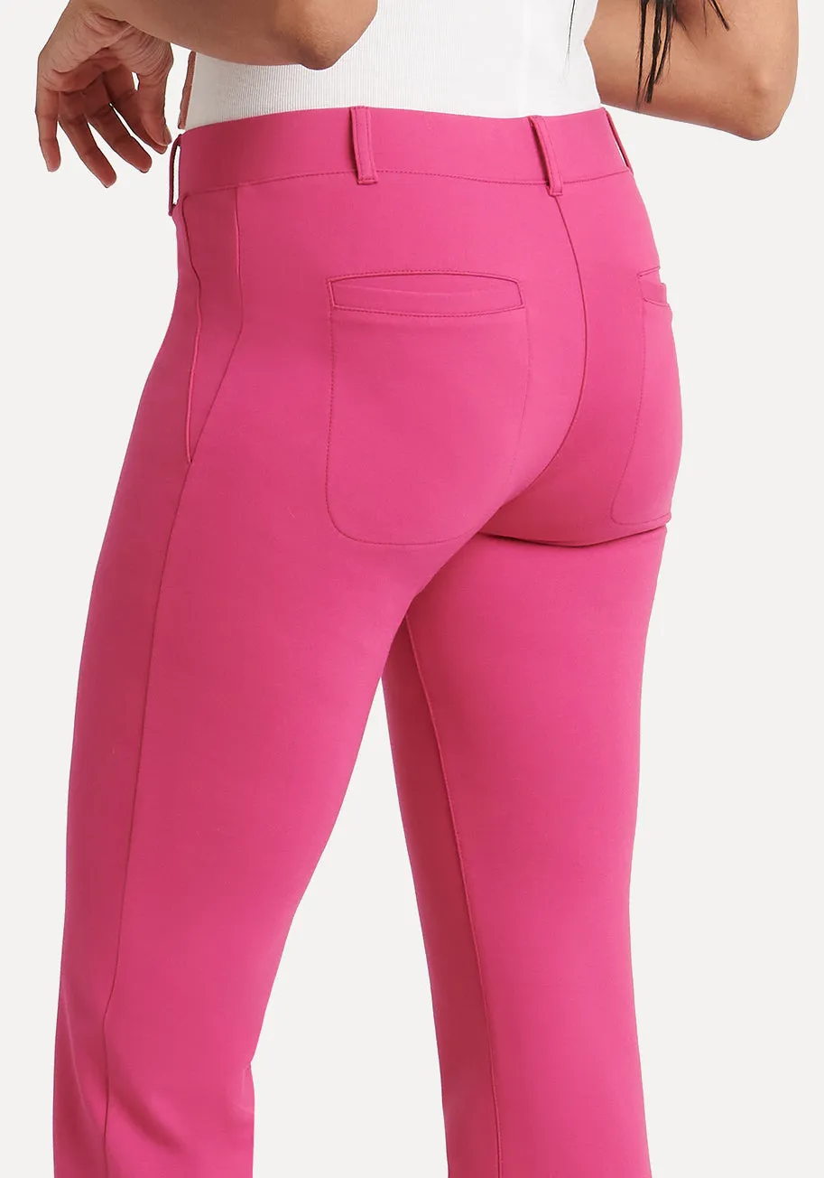 And now we've added a pair of back pockets designed to be handy without sacrificing style. Its what the Betabrand Community has been clamoring for! Enjoy a streamlined look with no gaping, no bulging, no fuss.Mid-rise, fitted through hip and thigh with a straight leg. If you're between sizes, we recommend making your selection based on waist measurement. These pants are designed to cover a heel; to style with flats, consider a shorter inseam.Machine-wash cold with like colors (non-chlorine bleach only) and lay flat to dry. Use a cool iron, if needed. 60% rayon, 34% nylon, 6% elastane.