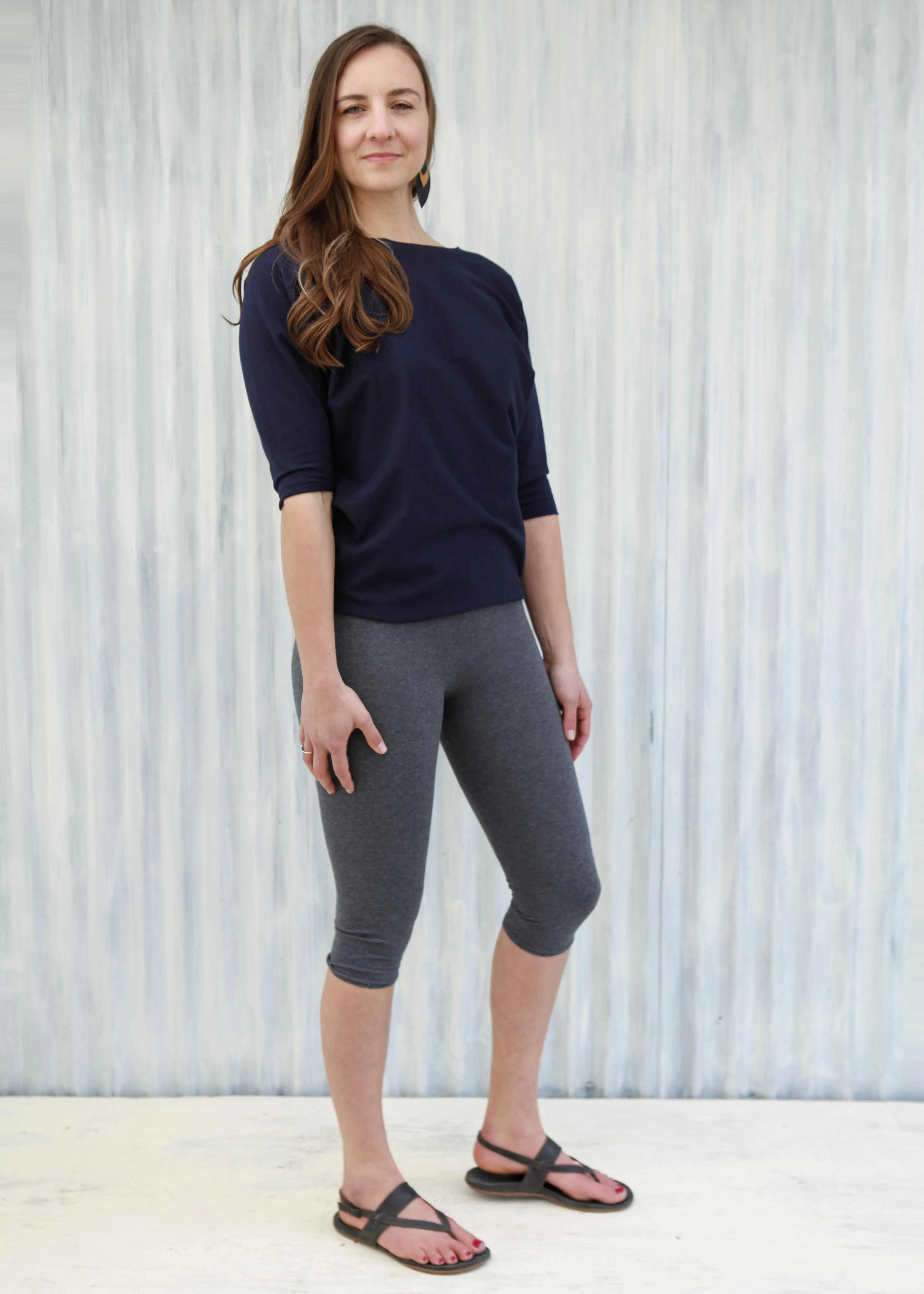 For a smart and flattering outfit, wear this loose and flowing batwing top with something fitted on the bottom and some high boots. Or, wear this top with your sweatpants at home. This unique top works well anywhere. It is soft and stretchy. If you want the coverage of a t-shirt, with a super low risk of pitting out your top, try this wonderful organic cotton shirt.