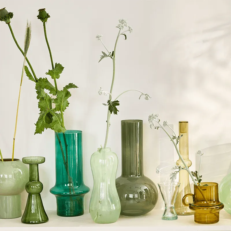 Each of Urban Nature Culture’s Collo vases brings its own accent to your urban interior. The series is made from recycled glass – giving a second life to countless pieces of used glass, blown back into a new shape. All four designs have their own character, feel, size and colour, but what unites them is the sheer elegance, a sense of serenity and the calmness their soft curves and shades bring. This recycled glass vase is a great gift – to friends, family, or yourself – for any lover of flowers.